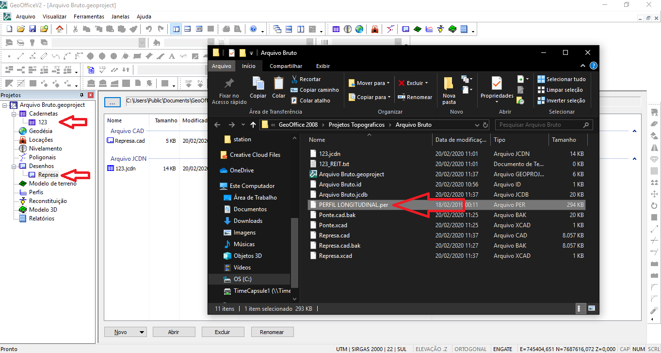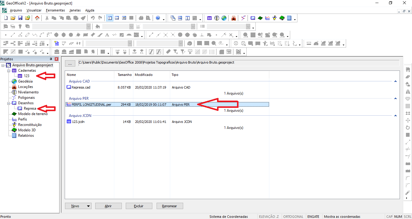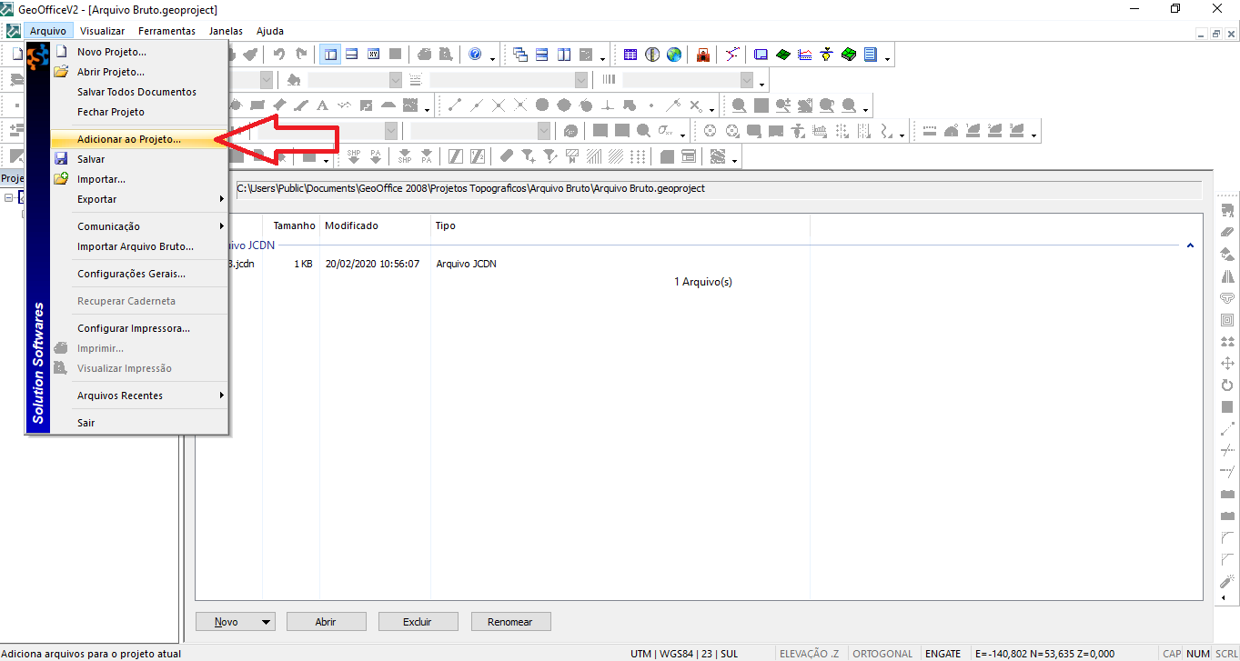 - Adicionar no GeoOffice é quando queremos colocar um arquivo gerado pelo próprio GeoOffice dentro de um Projeto, como: Caderneta, Desenho, MDT, Perfil, etc...