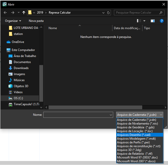 Navegue até a pasta onde se encontra o arquivo desejado e escolha o "tipo de arquivo" que se refere, conforme a imagem abaixo.
