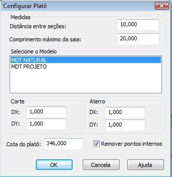 Cota do Platô: ao definir uma cota, o seu platô se torna plano por inteiro e a saia vai ser desenhada a partir da sua cota até que che-gue ao MDT natural.
