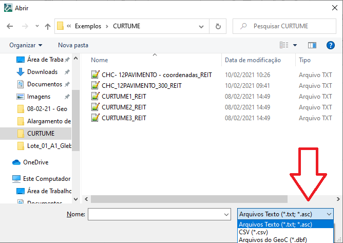 Menu Arquivo / Importar --> escolha a opção TXT; ASC