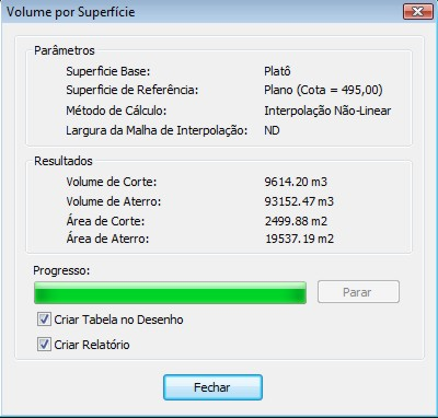 OBS: para este cálculo, é necessário se ter 2 MTDs, sendo o primeiro, referente ao levantamento do Terreno Natural e o segundo, o projeto que se está desenvolvendo.